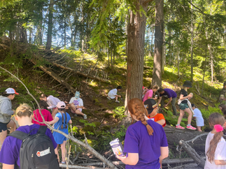 Wednesday was Rain Forest Day, and we started things off with a fast-paced Kahoot quiz all about the rain forest. The competition was fierce, and we quickly discovered we had some true rain forest experts among us. Next, Megan from 45Drives led a fantastic hands-on activity about invasive species and food competition. Campers got creative using different “beaks” (spoons, magnets, and tape) to collect food—learning firsthand how adaptations and invasive species can impact survival. We made our own ecosystems in a jar to take home as well. In the afternoon, Jamey, Hannah, and DJ from the Eskasoni Fish and Wildlife Commission shared teachings on Etuaptmumk (Two-Eyed Seeing) and Netukulimk, helping us understand the importance of blending Indigenous and Western knowledge when it comes to caring for the environment. We wrapped up the day with a camouflage challenge, testing our eyes to see if we could spot hidden animals in their habitats—it was harder than it looked!